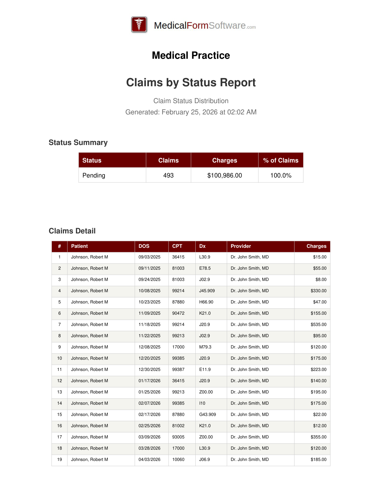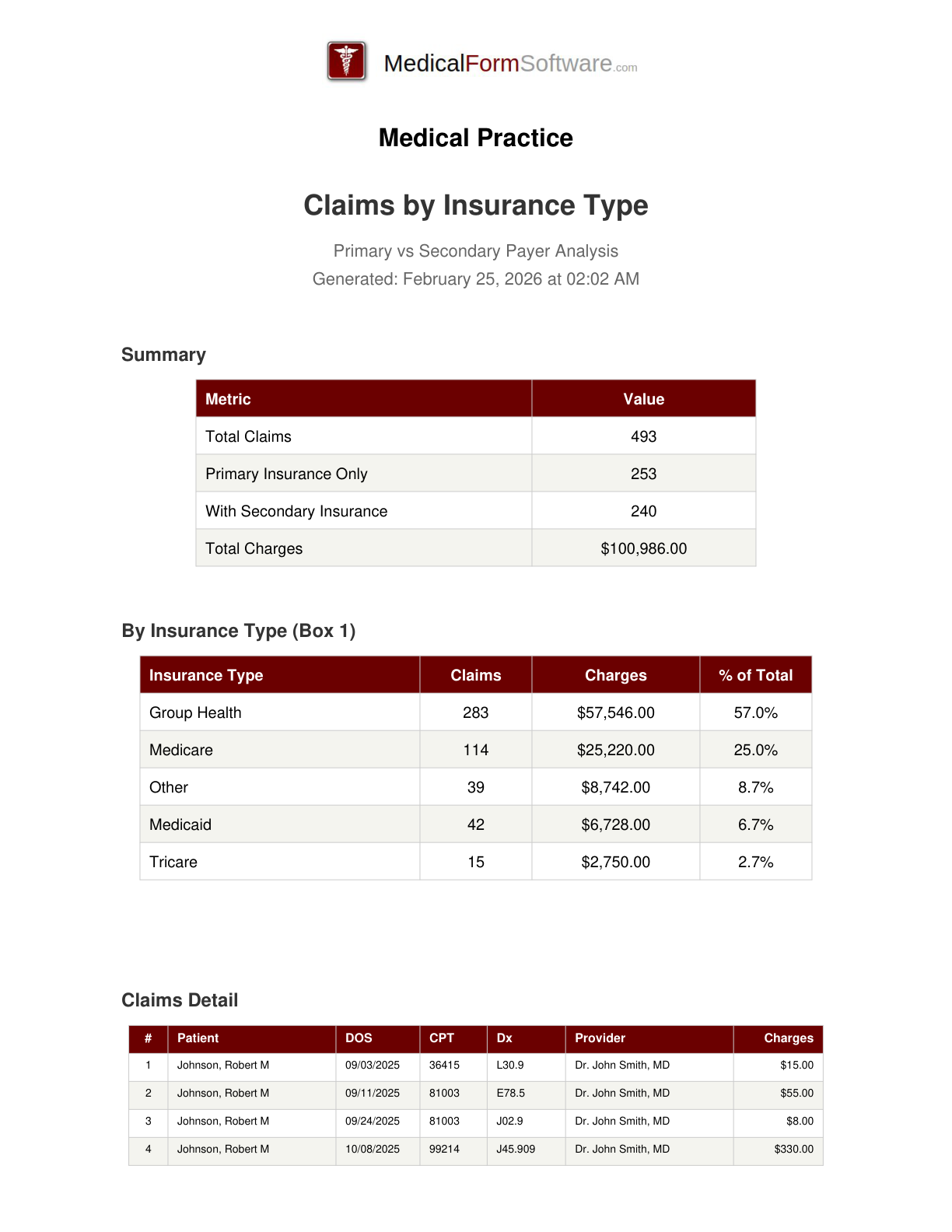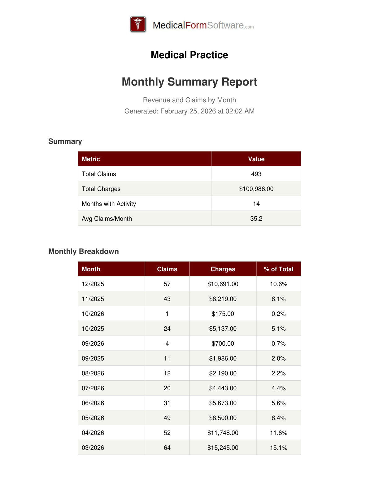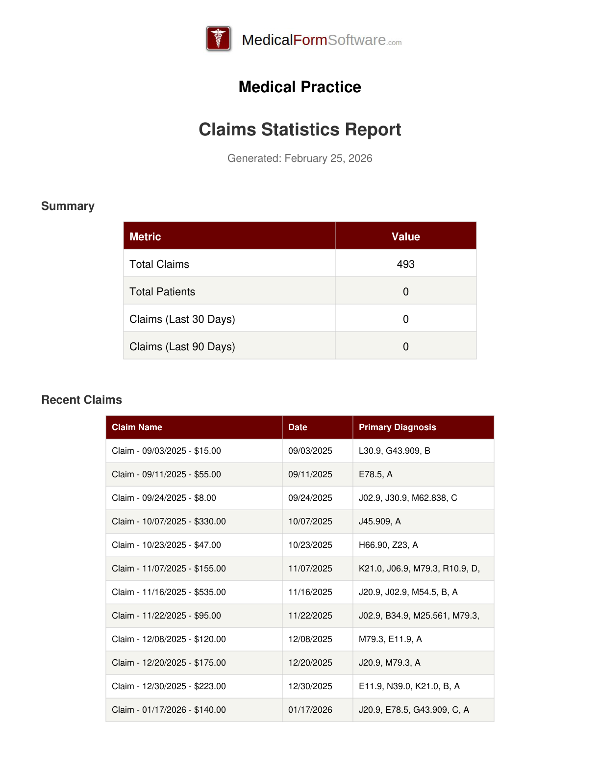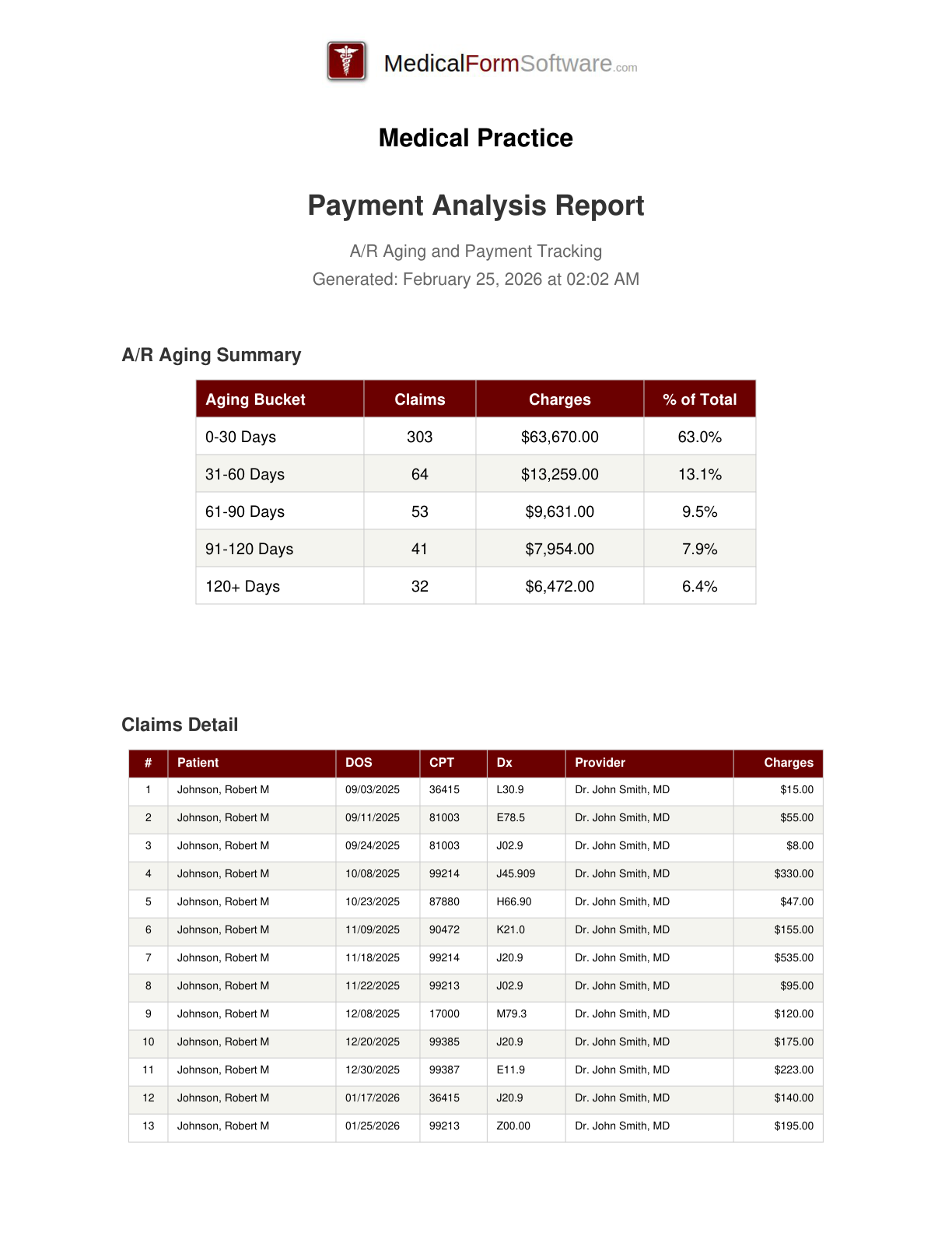 Track every dollar from claim submission through final payment with our billing and collections module built into your desktop application with no internet required. Monitor accounts receivable aging, payment trends, denial rates, and collection performance through interactive dashboards running on your local machine. Post payments or import ERA 835 remittance files to match payments to claims. Manage denials with built-in appeal tracking and resolution timelines. Our integrated AI assistant answers coding questions, explains denial codes, and generates reports without sending patient data online. All data is stored locally and HIPAA compliant with no cloud dependency or monthly fees. The Paper Claims and Electronics Software is also included, at no additional cost.