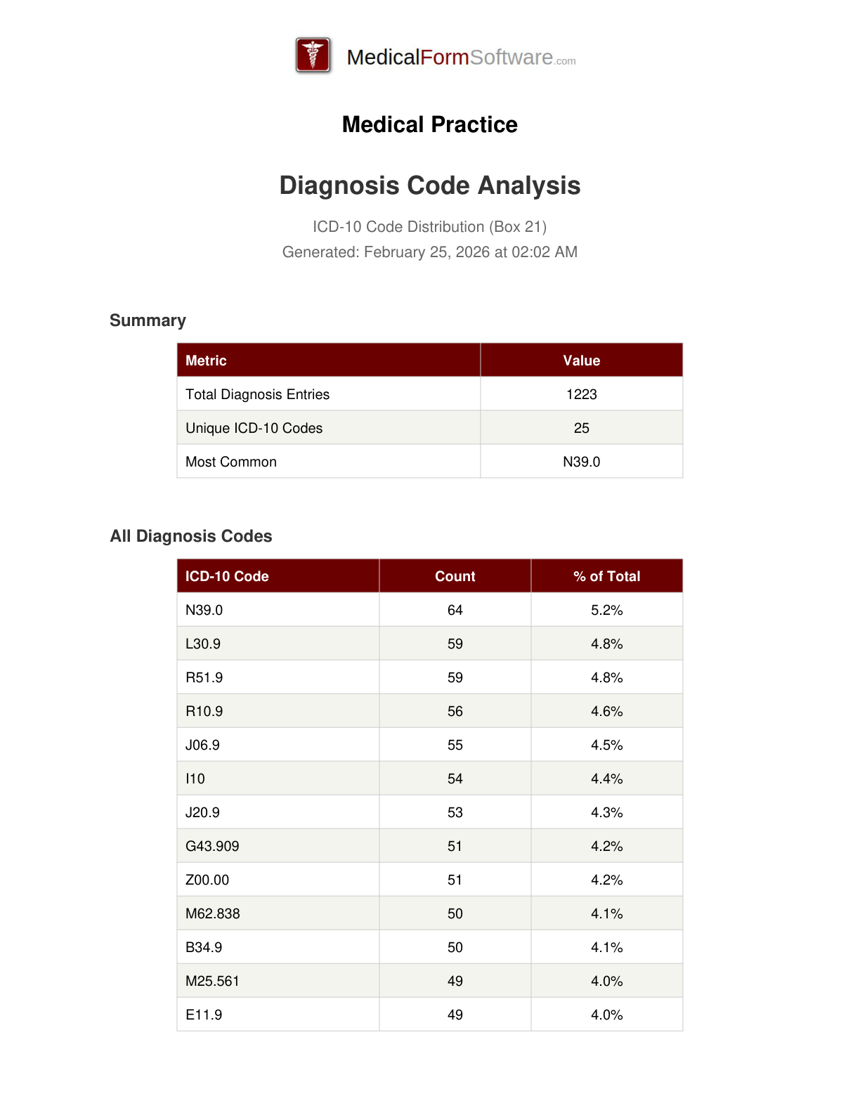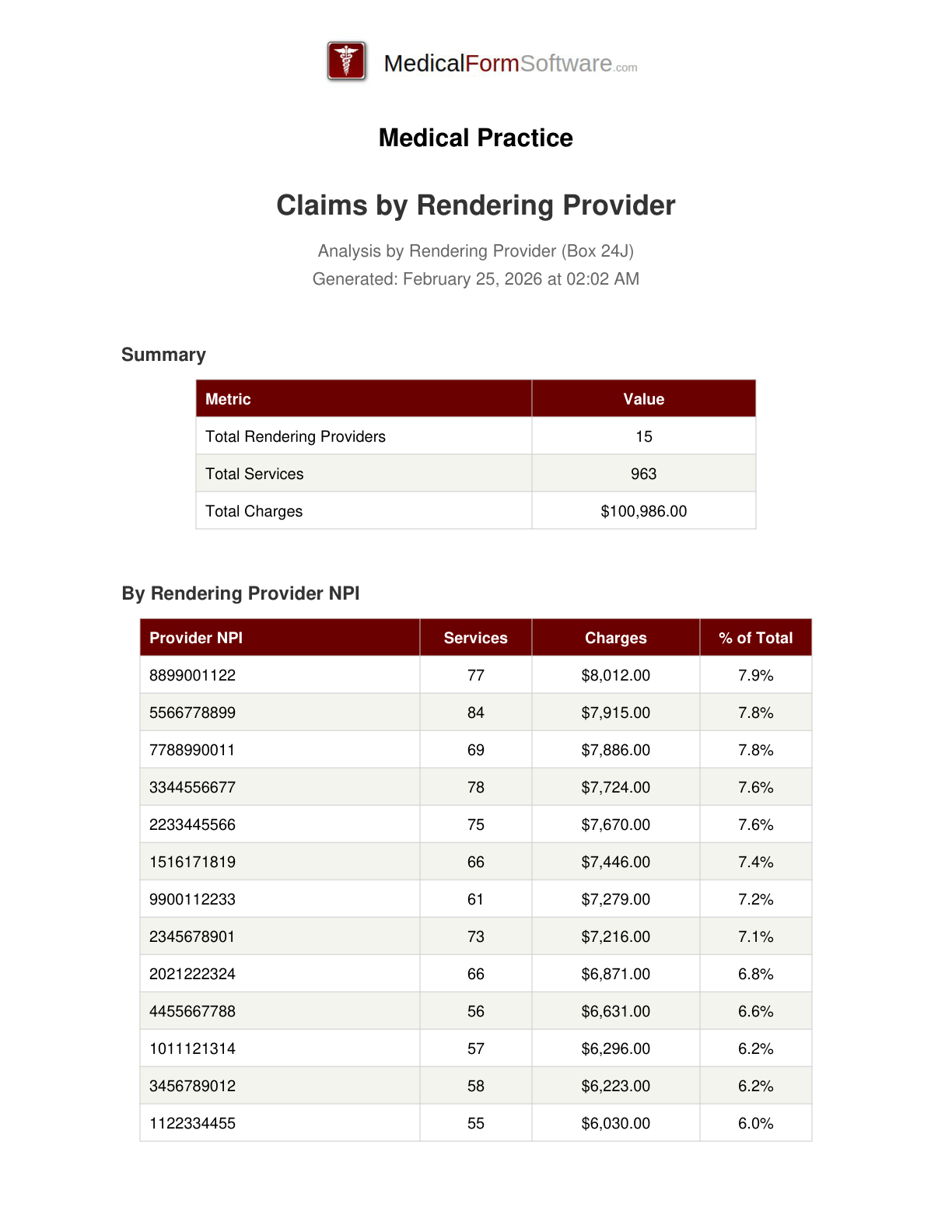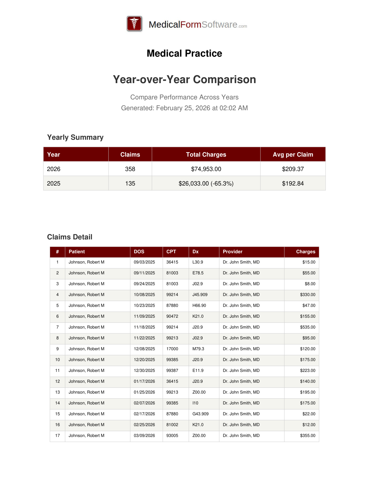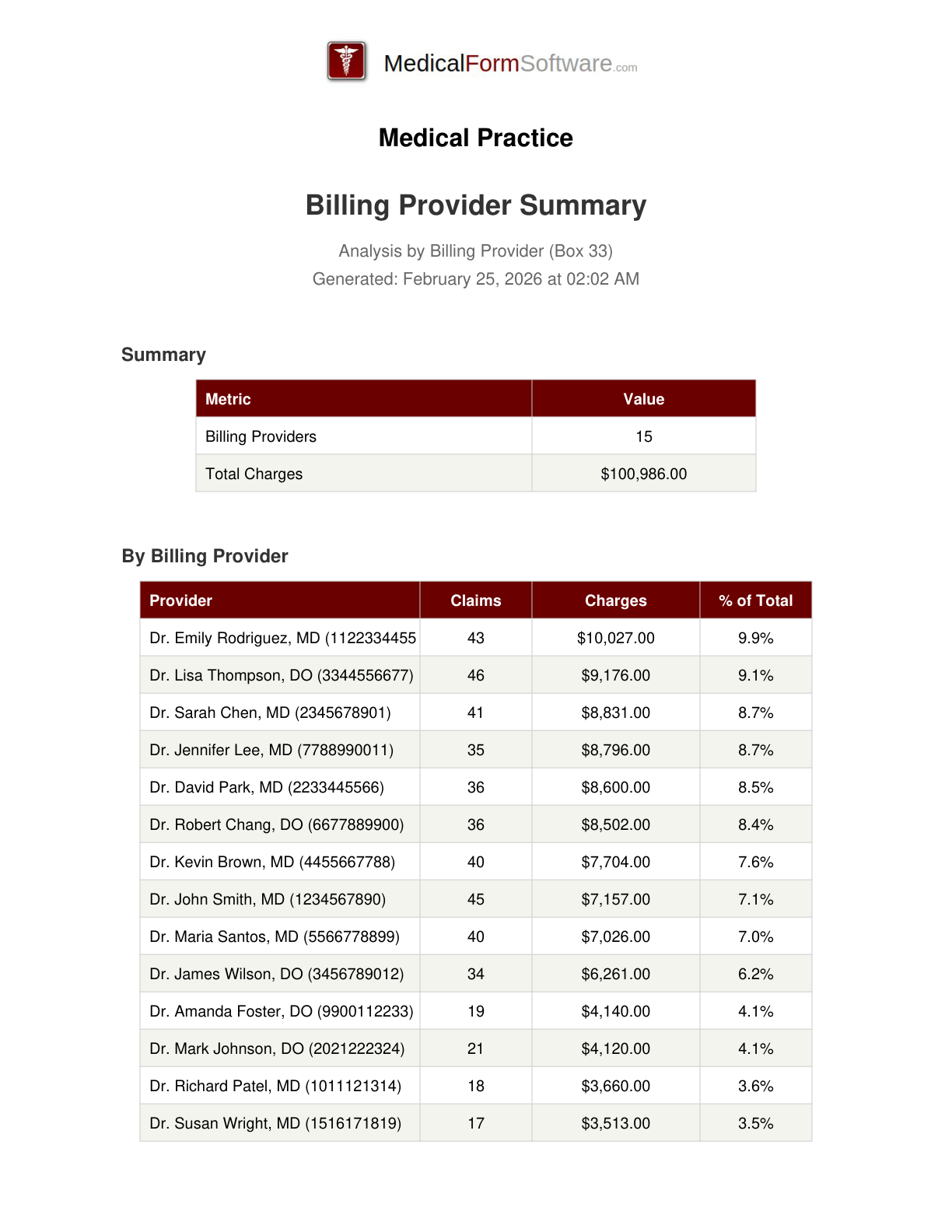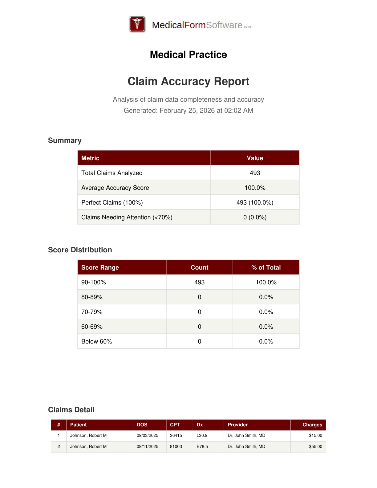 Track every dollar from claim submission through final payment with our billing and collections module built into your desktop application with no internet required. Monitor accounts receivable aging, payment trends, denial rates, and collection performance through interactive dashboards running on your local machine. Post payments or import ERA 835 remittance files to match payments to claims. Manage denials with built-in appeal tracking and resolution timelines. Our integrated AI assistant answers coding questions, explains denial codes, and generates reports without sending patient data online. All data is stored locally and HIPAA compliant with no cloud dependency or monthly fees. The Paper Claims and Electronics Software is also included, at no additional cost.