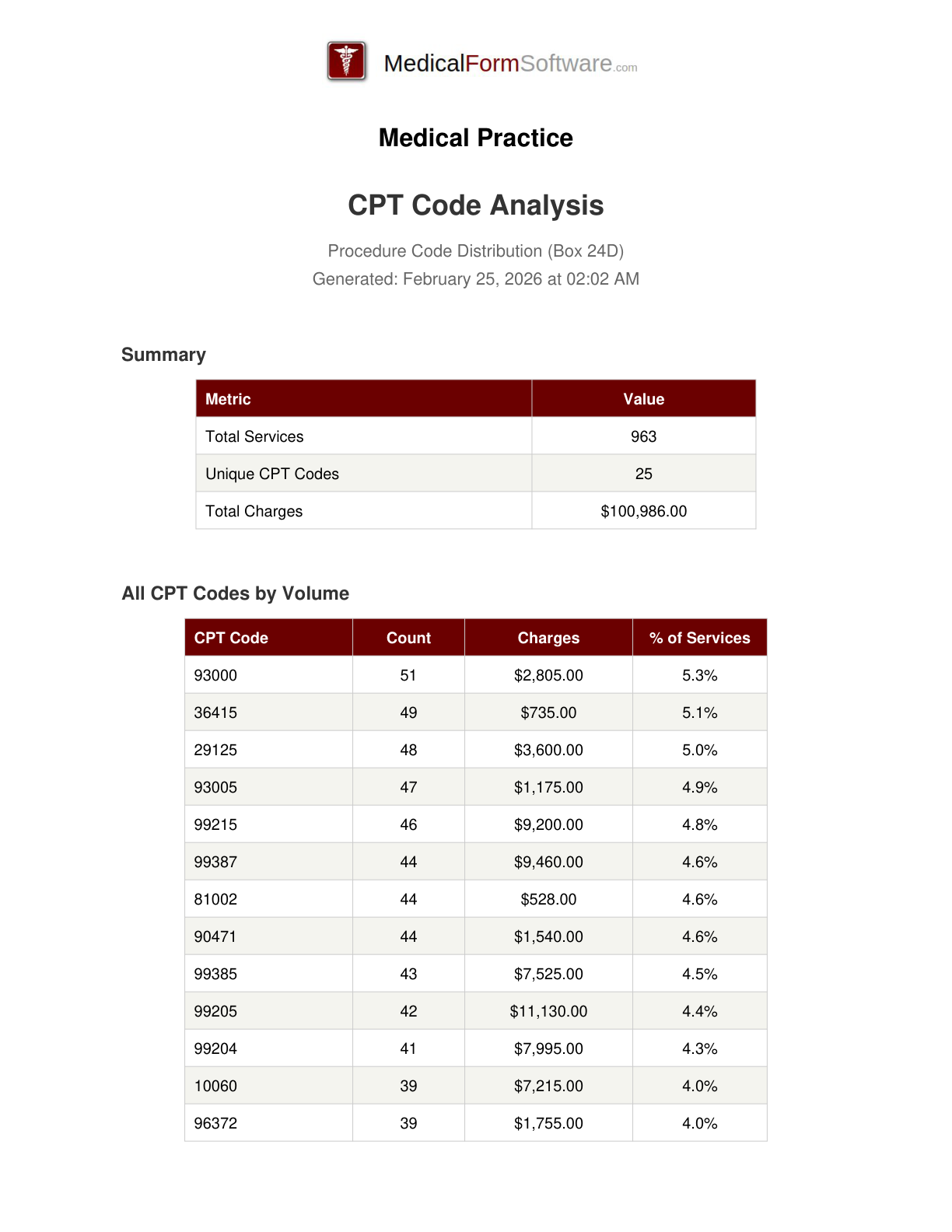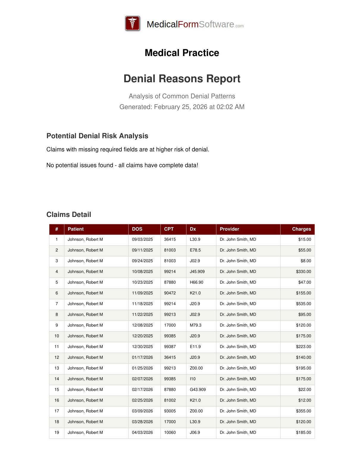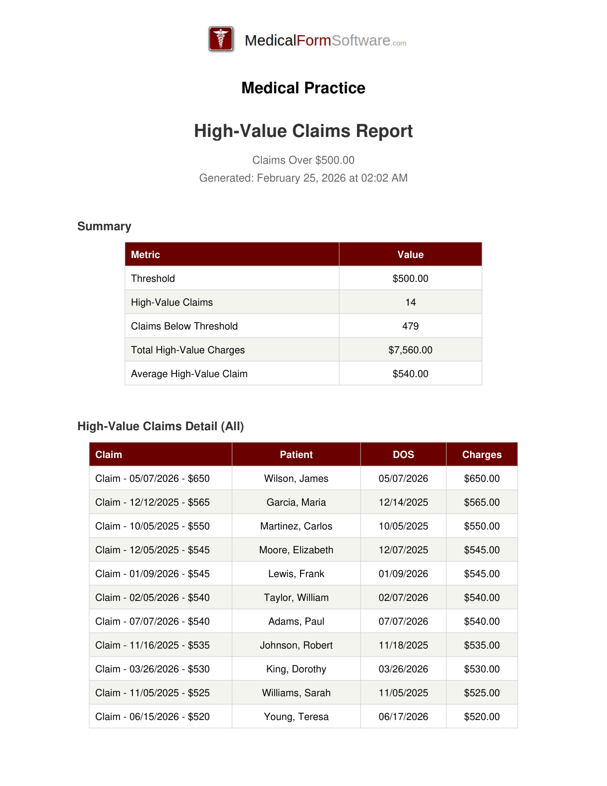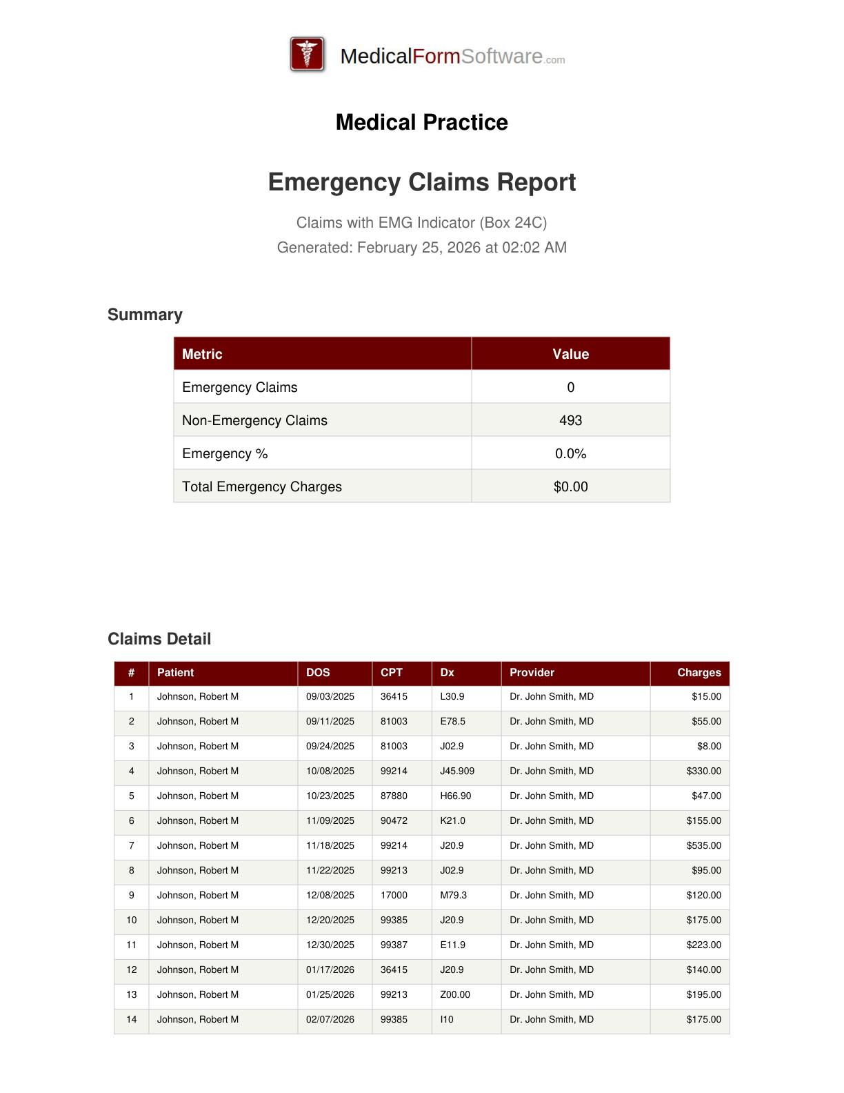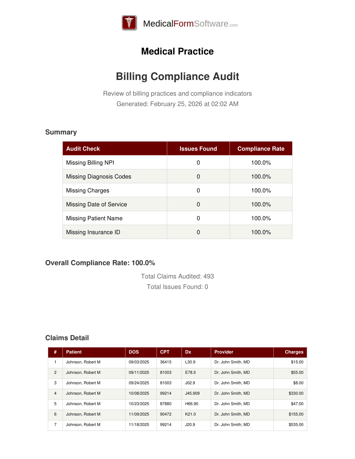 Track every dollar from claim submission through final payment with our billing and collections module built into your desktop application with no internet required. Monitor accounts receivable aging, payment trends, denial rates, and collection performance through interactive dashboards running on your local machine. Post payments or import ERA 835 remittance files to match payments to claims. Manage denials with built-in appeal tracking and resolution timelines. Our integrated AI assistant answers coding questions, explains denial codes, and generates reports without sending patient data online. All data is stored locally and HIPAA compliant with no cloud dependency or monthly fees. The Paper Claims and Electronics Software is also included, at no additional cost.